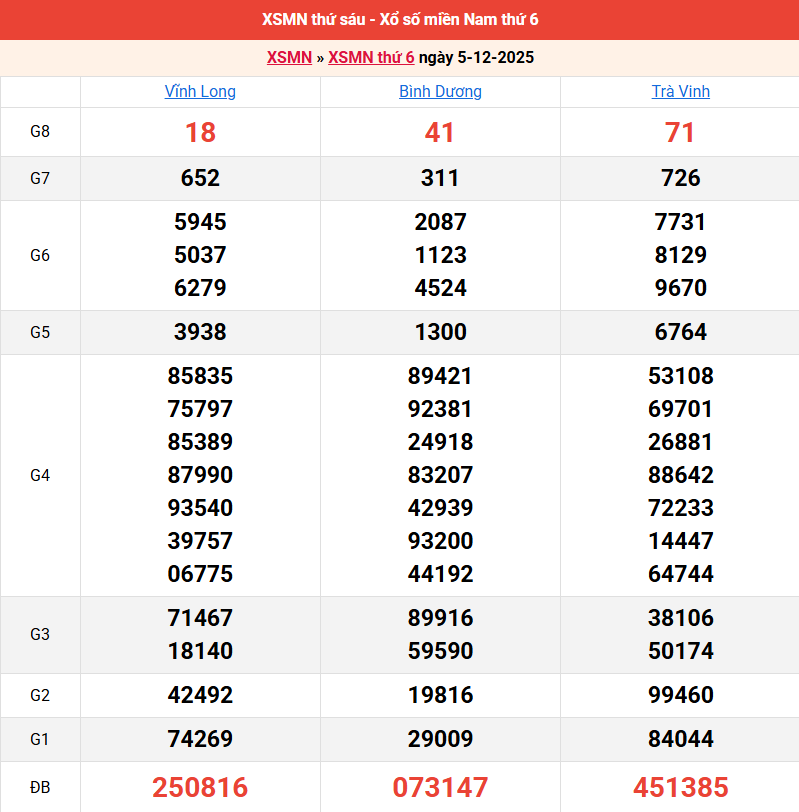 Quay thử kết quả miền Nam ngày 12/12/2025