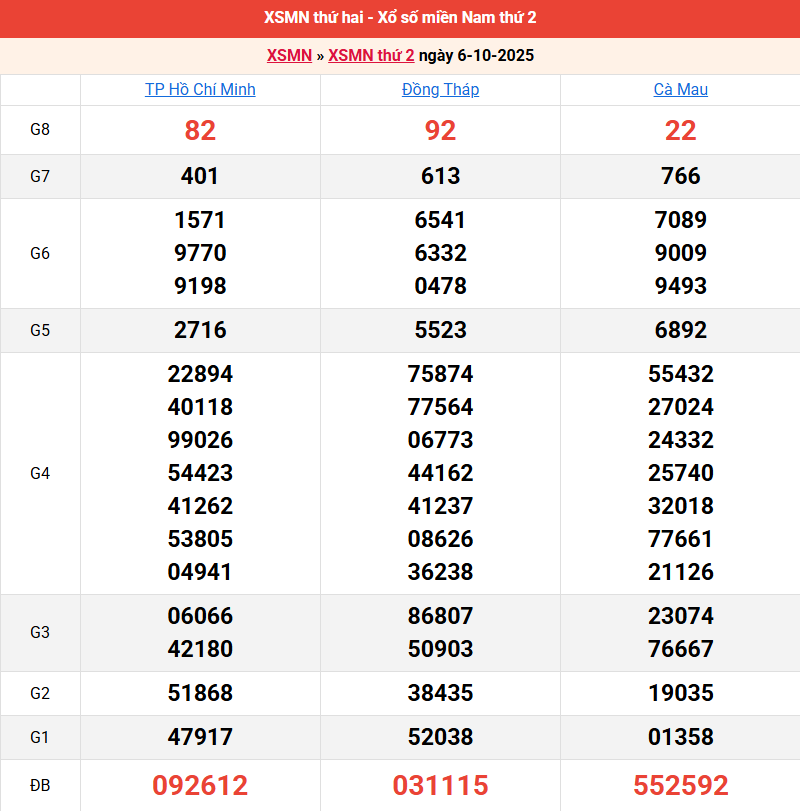 Bảng kết quả kỳ trước 06/10/2025