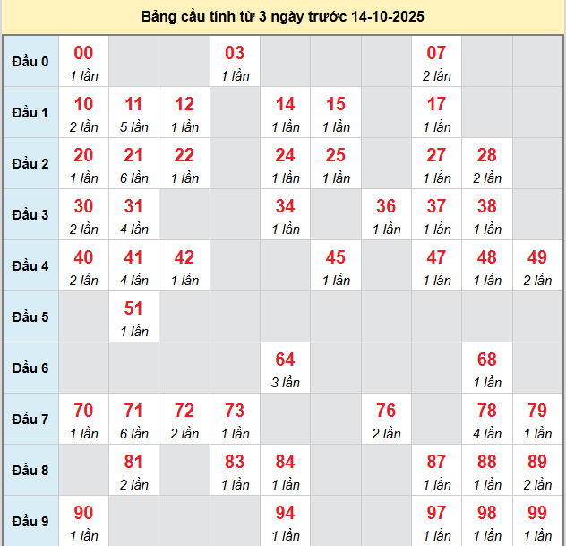 Thống kê cầu hôm nay giúp người chơi có thêm dữ liệu khi phân tích và dự đoán kỳ này được chính xác hơn. Trước khi đến với thống kê, mời các bạn theo dõi lại bảng kết quả kỳ trước để có cái nhìn bao quát hơn về vị trí các con số đã xuất hiện.
