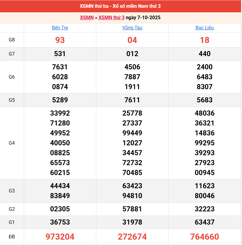 Bảng kết quả kỳ trước 07/10/2025