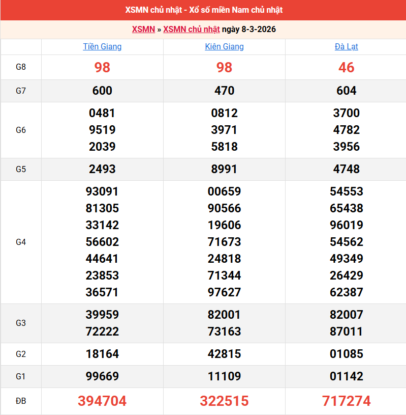 Bảng kết quả kỳ trước 08/03/2026