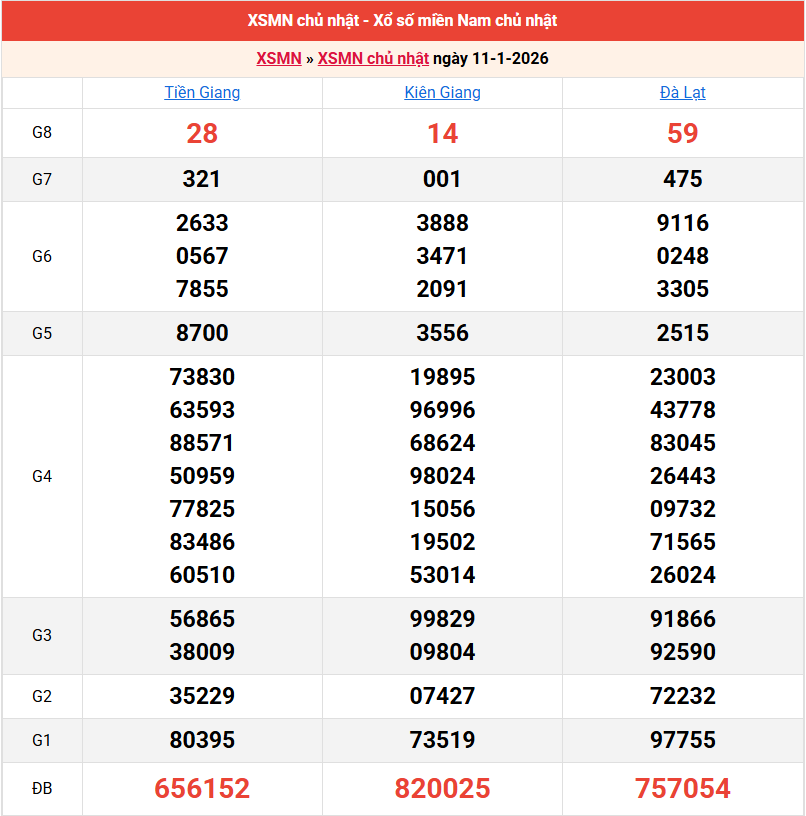Bảng kết quả kỳ trước 11/01/2026