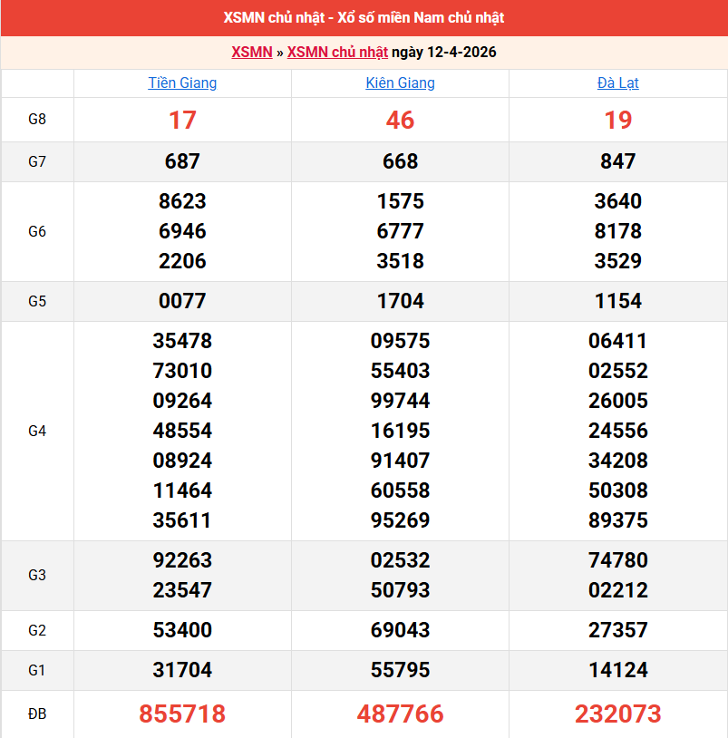 Bảng kết quả kỳ trước 12/04/2026