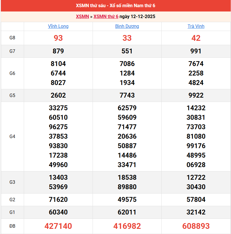 Bảng kết quả kỳ trước 12/12/2025