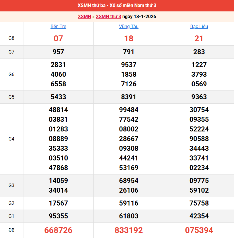 Quay thử kết quả miền Nam ngày 20/01/2026