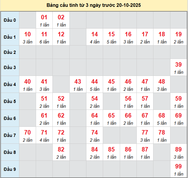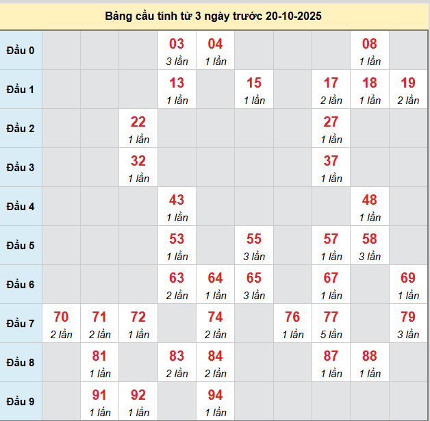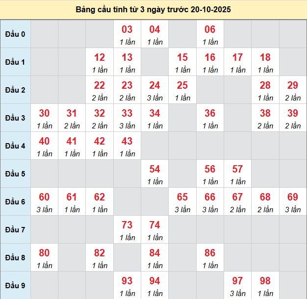 Thống kê soi cầu Miền Nam ngày 20/10 năm 2025 ba đài mở thưởng chiều tối nay chính xác. Những bộ số xuất hiện đều được ghép từ các vị trí trong bảng kết quả từng tỉnh với biên độ thời gian lô rơi liên tục 3 kỳ liên tiếp giúp bạn săn cầu đẹp, bao lô chắc trúng.