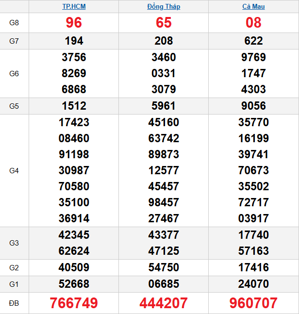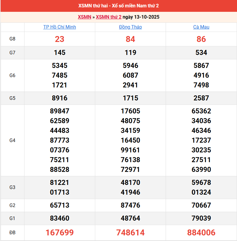 Quay thử kết quả miền Nam ngày 20/10/2025