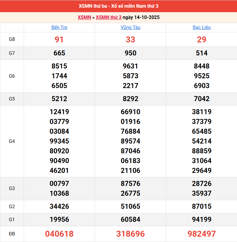Quay thử kết quả miền Nam ngày 21/10/2025