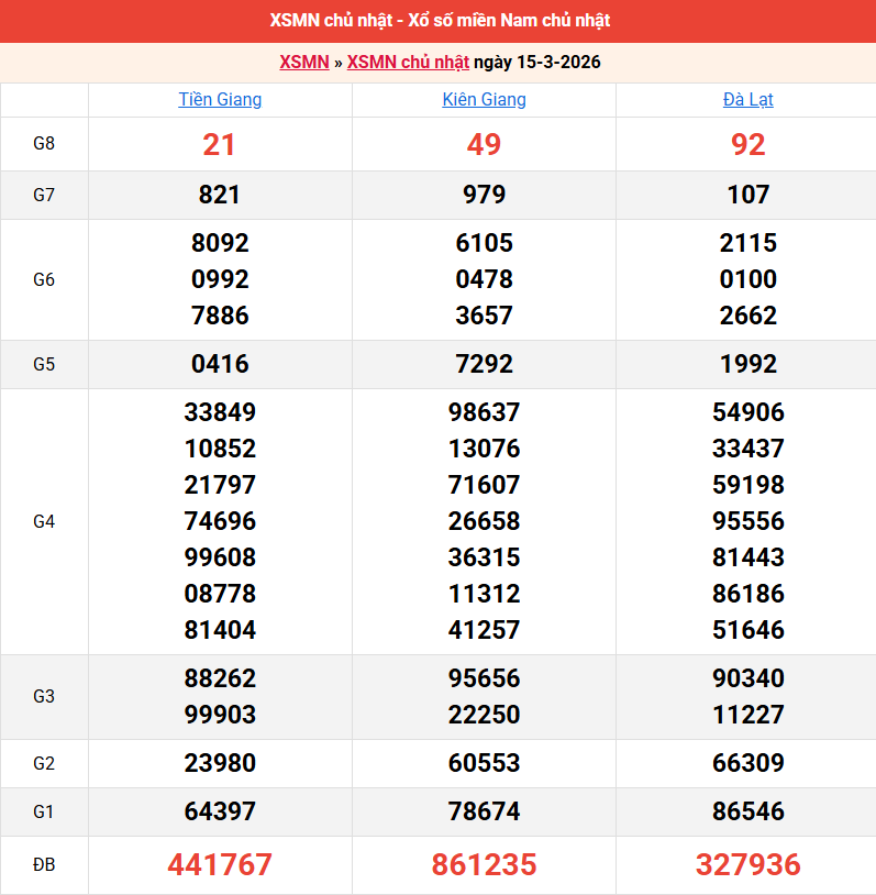 Bảng kết quả kỳ trước 15/03/2026