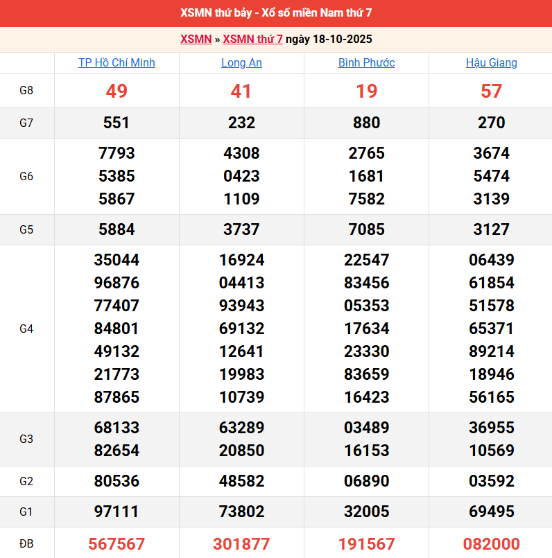 Quay thử kết quả miền Nam ngày 25/10/2025