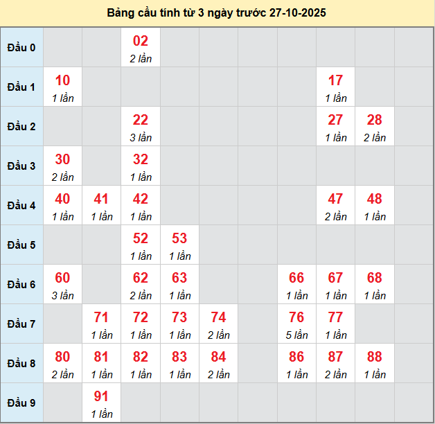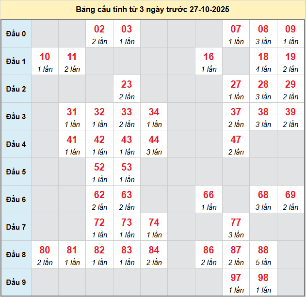 Thống kê soi cầu Miền Nam ngày 27/10 năm 2025 ba đài mở thưởng chiều tối nay chính xác. Những bộ số xuất hiện đều được ghép từ các vị trí trong bảng kết quả từng tỉnh với biên độ thời gian lô rơi liên tục 3 kỳ liên tiếp giúp bạn săn cầu đẹp, bao lô chắc trúng.