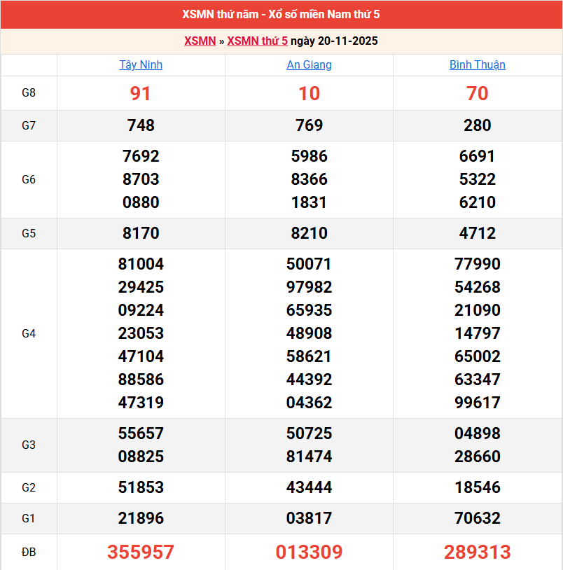 Bảng kết quả kỳ trước 20/11/2025