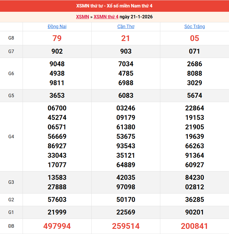 Bảng kết quả kỳ trước 21/01/2026