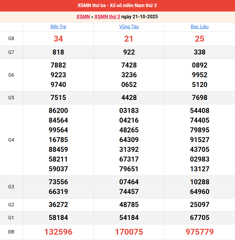 Bảng kết quả kỳ trước 21/10/2025