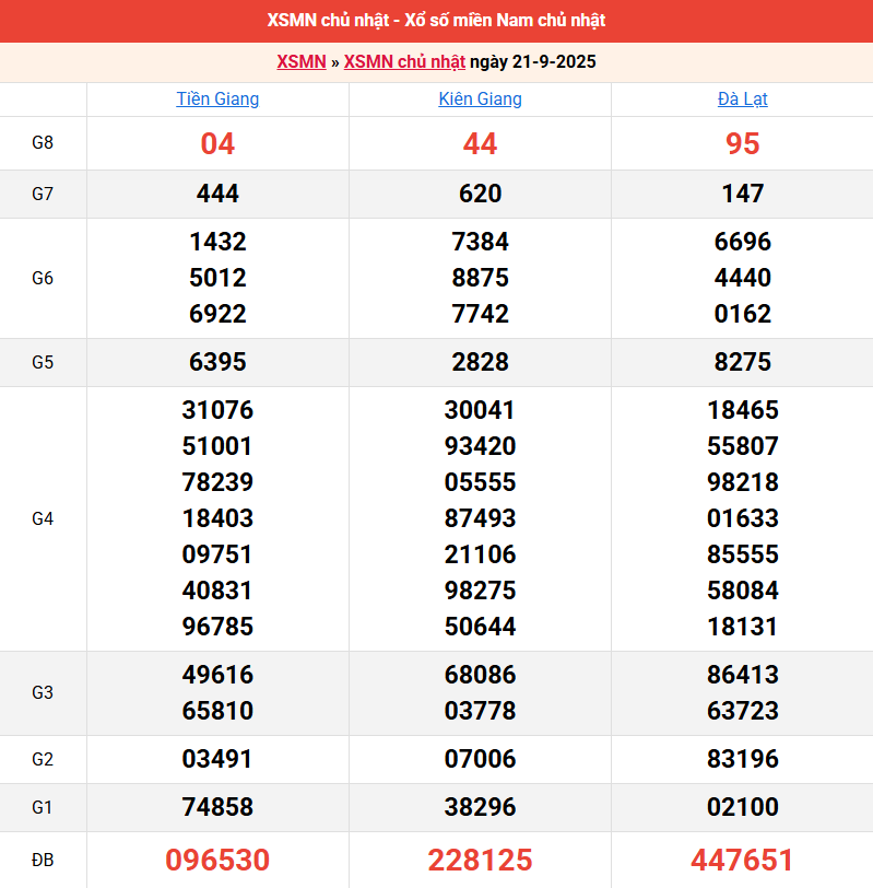 Bảng kết quả kỳ trước 21/9/2025