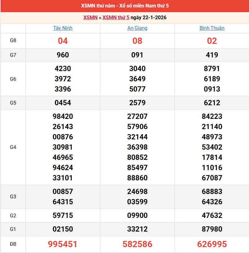 Bảng kết quả kỳ trước 22/01/2026