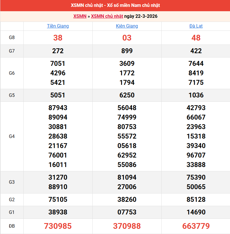 Bảng kết quả kỳ trước 22/03/2026