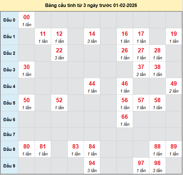 Thống kê soi cầu Miền Trung ngày 01/02/2026 ba đài mở thưởng chiều tối nay chính xác. Những bộ số xuất hiện đều được ghép từ các vị trí trong bảng kết quả từng tỉnh với biên độ thời gian lô rơi liên tục 3 kỳ liên tiếp giúp bạn săn cầu đẹp, bao lô chắc trúng.