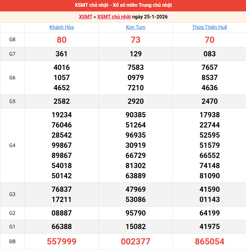 Bảng kết quả kỳ trước 25/01/2026