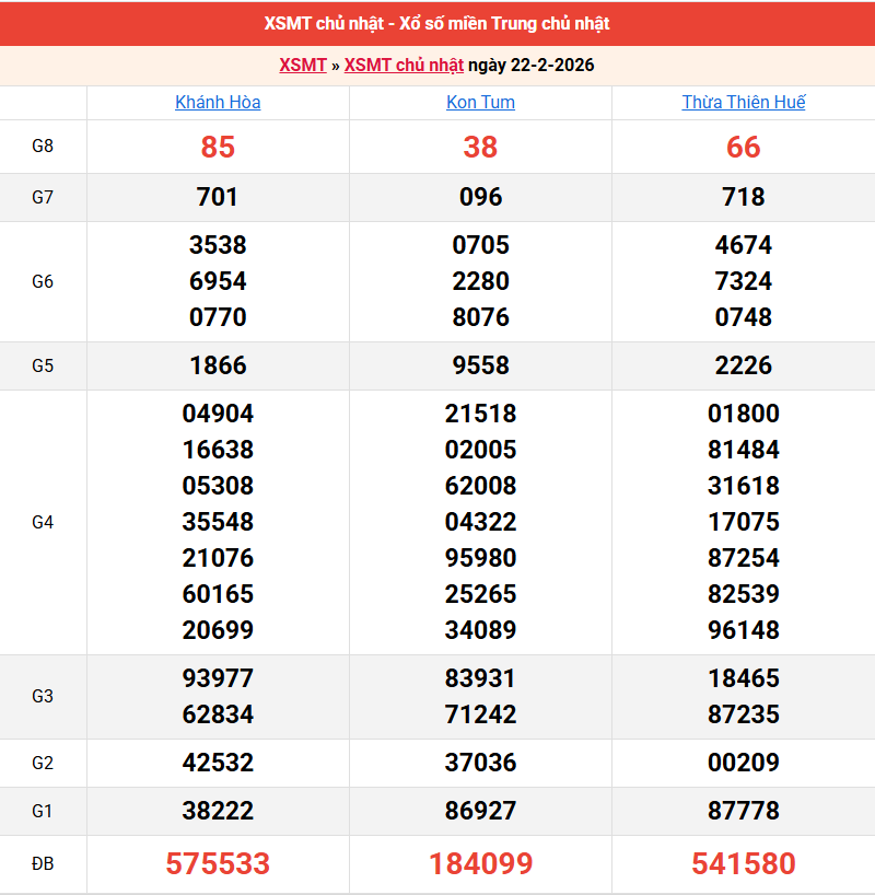 Bảng kết quả kỳ trước 22/02/2026