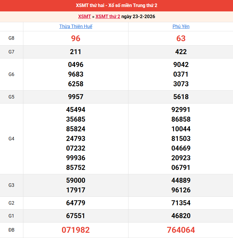 Bảng kết quả kỳ trước 23/02/2026
