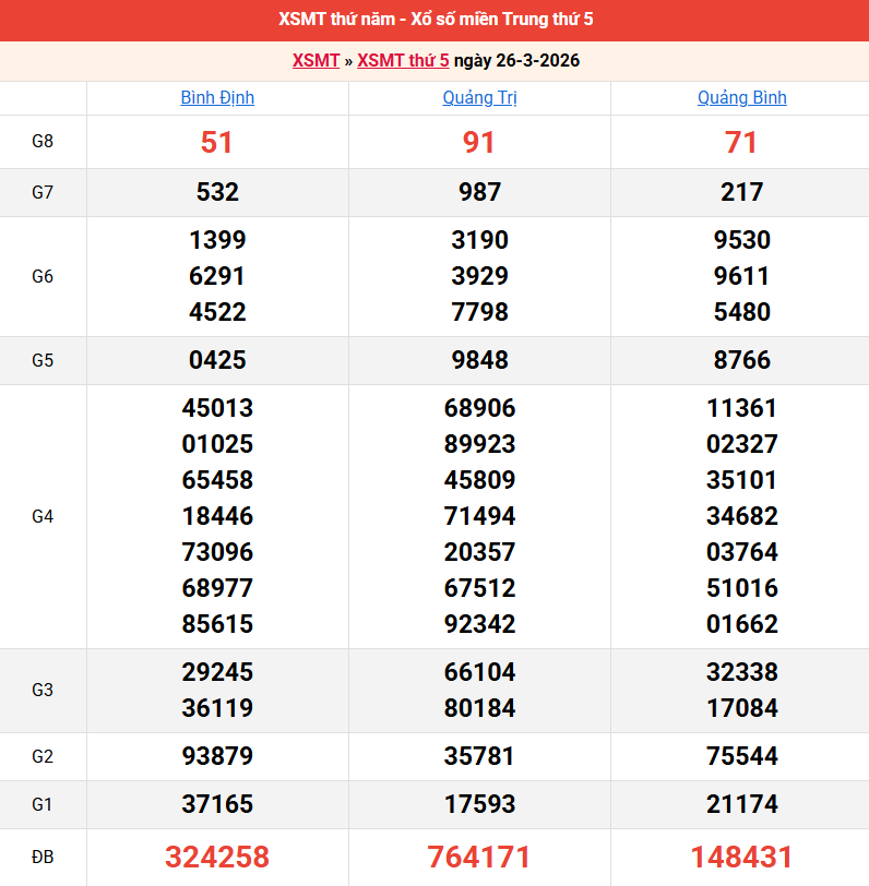 Bảng kết quả kỳ trước 26/03/2026