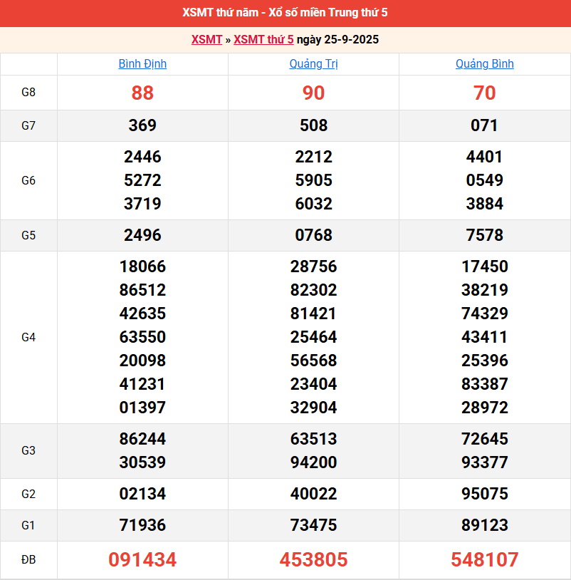 Bảng kết quả kỳ trước 25/9/2025