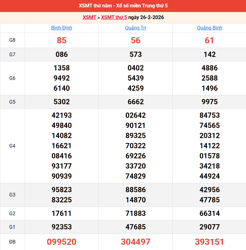 Bảng kết quả kỳ trước 26/02/2026