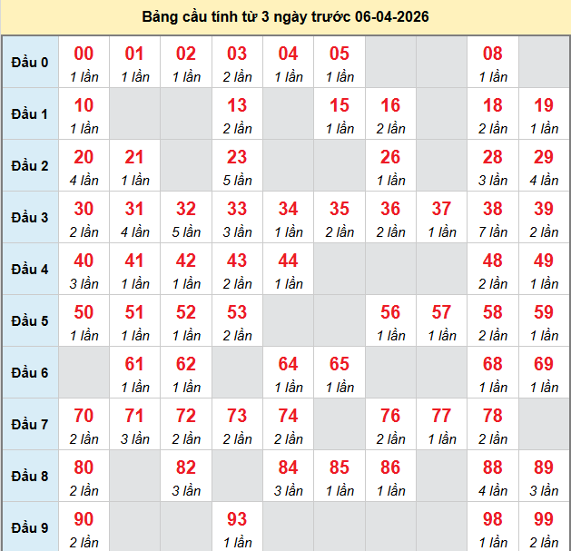 Thống kê cầu hôm nay giúp người chơi có thêm dữ liệu khi phân tích và dự đoán kỳ này được chính xác hơn. Trước khi đến với thống kê, mời các bạn theo dõi lại bảng kết quả kỳ trước để có cái nhìn bao quát hơn về vị trí các con số đã xuất hiện