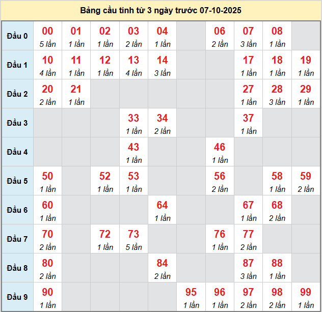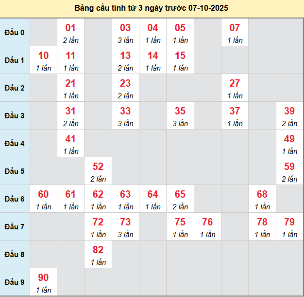 Thống kê cầu hôm nay giúp người chơi có thêm dữ liệu khi phân tích và dự đoán kỳ này được chính xác hơn. Trước khi đến với thống kê, mời các bạn theo dõi lại bảng kết quả kỳ trước để có cái nhìn bao quát hơn về vị trí các con số đã xuất hiện