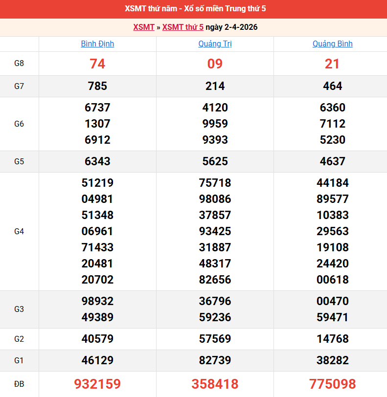 Bảng kết quả kỳ trước 02/04/2026