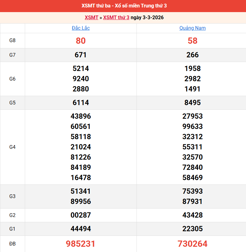Bảng kết quả kỳ trước 03/03/2026
