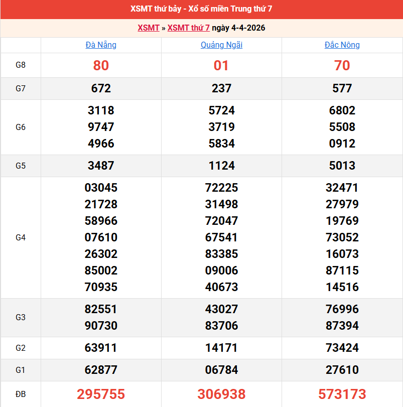 Bảng kết quả kỳ trước 04/04/2026
