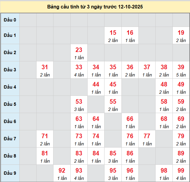 Thống kê cầu hôm nay giúp người chơi có thêm dữ liệu khi phân tích và dự đoán kỳ này được chính xác hơn. Trước khi đến với thống kê, mời các bạn theo dõi lại bảng kết quả kỳ trước để có cái nhìn bao quát hơn về vị trí các con số đã xuất hiện.