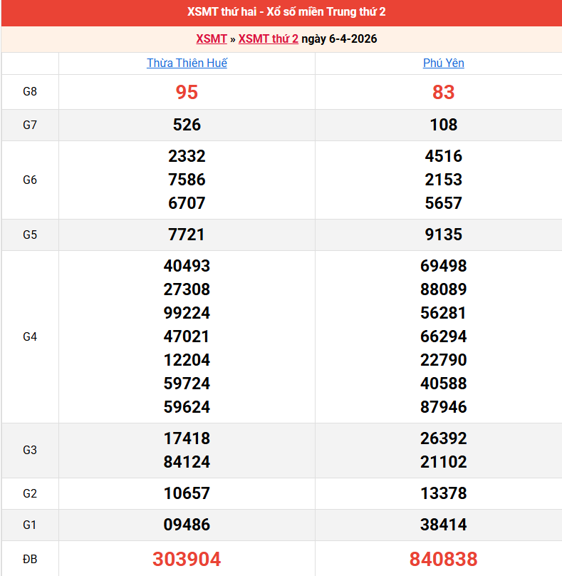 Bảng kết quả kỳ trước 06/04/2026