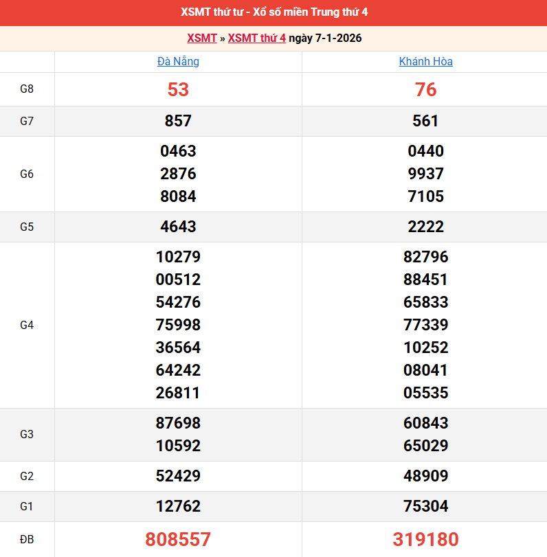 Bảng kết quả kỳ trước 07/01/2026