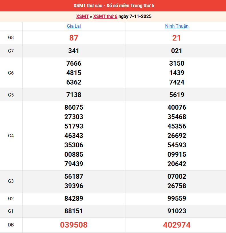 Bảng kết quả kỳ trước 07/11/2025
