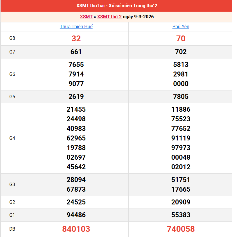 Bảng kết quả kỳ trước 09/03/2026