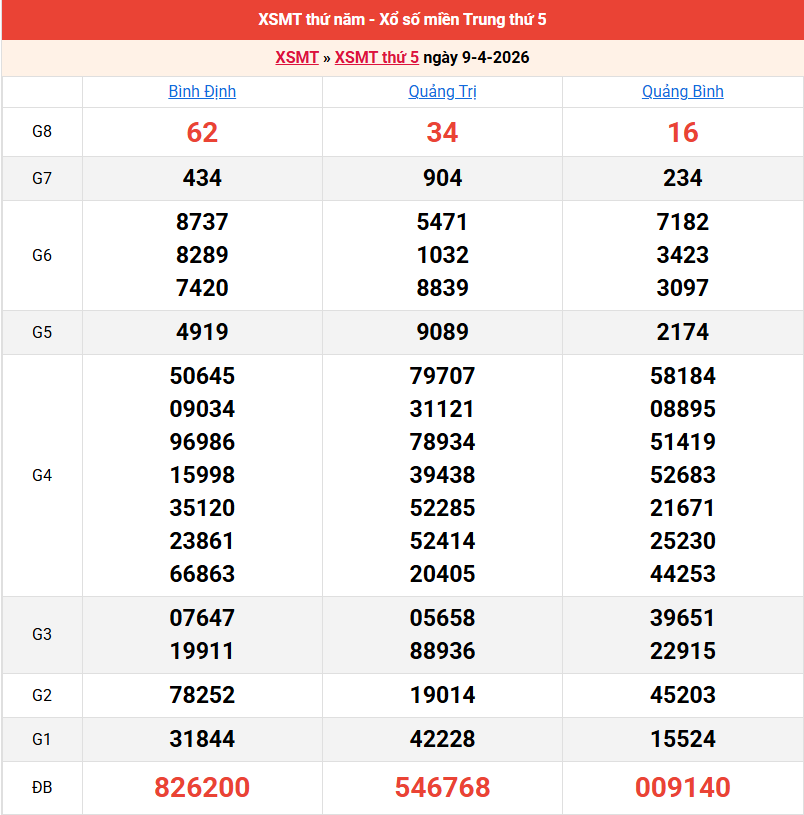 Bảng kết quả kỳ trước 09/04/2026
