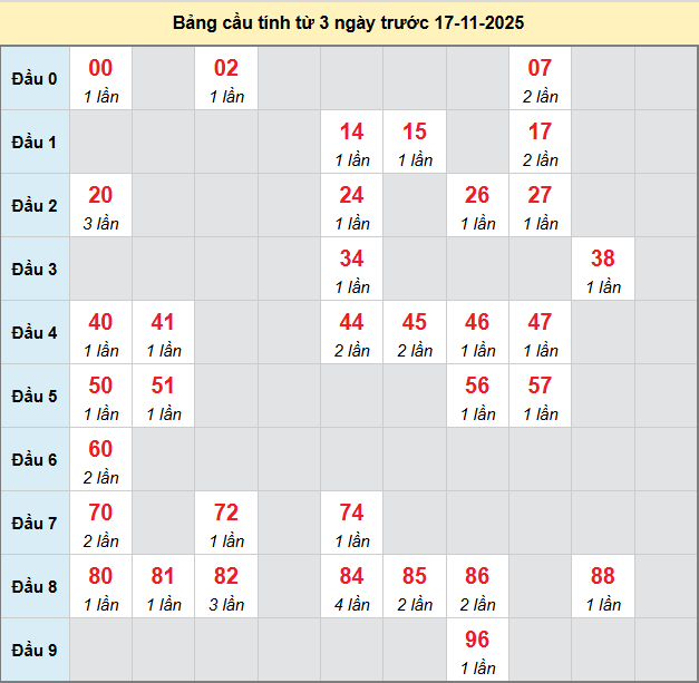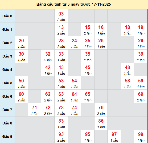 Thống kê cầu hôm nay giúp người chơi có thêm dữ liệu khi phân tích và dự đoán kỳ này được chính xác hơn. Trước khi đến với thống kê, mời các bạn theo dõi lại bảng kết quả kỳ trước để có cái nhìn bao quát hơn về vị trí các con số đã xuất hiện