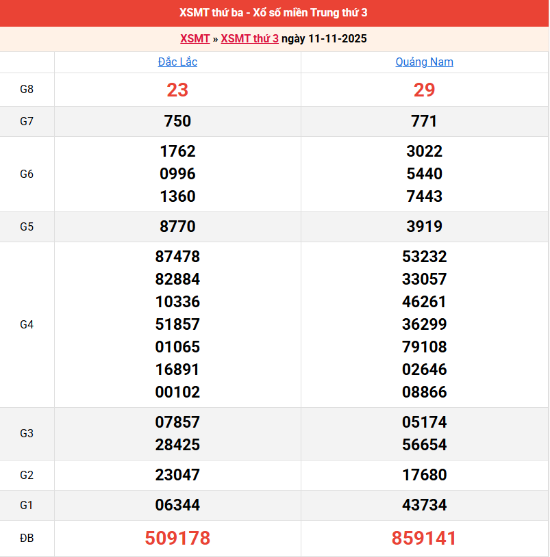 Bảng kết quả kỳ trước 11/11/2025