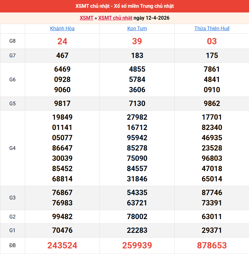 Bảng kết quả kỳ trước 12/04/2026