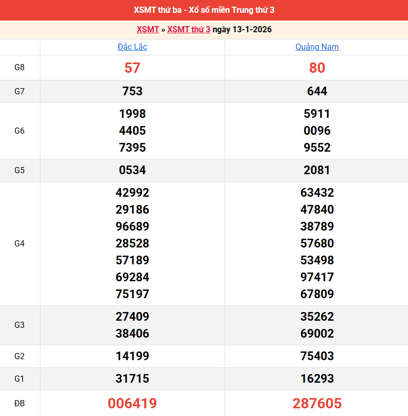 Bảng kết quả kỳ trước 13/01/2026