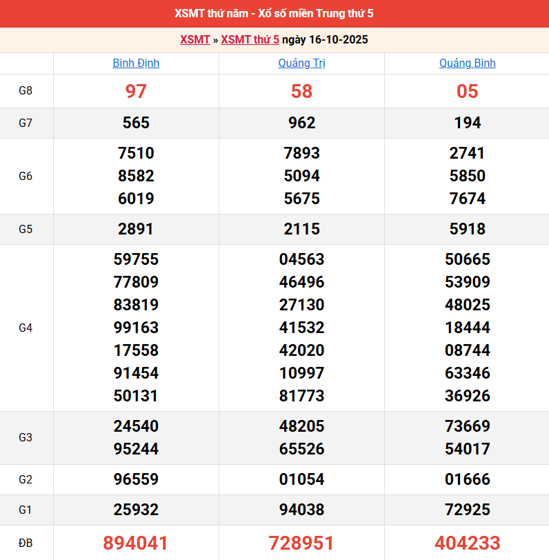 Bảng kết quả kỳ trước 16/10/2025