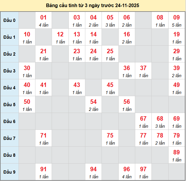 Thống kê cầu hôm nay giúp người chơi có thêm dữ liệu khi phân tích và dự đoán kỳ này được chính xác hơn. Trước khi đến với thống kê, mời các bạn theo dõi lại bảng kết quả kỳ trước để có cái nhìn bao quát hơn về vị trí các con số đã xuất hiện