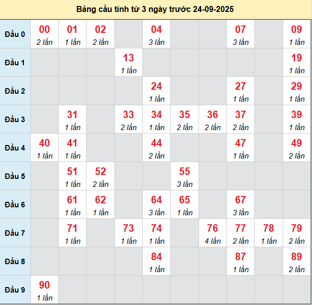 Thống kê cầu hôm nay giúp người chơi có thêm dữ liệu khi phân tích và dự đoán kỳ này được chính xác hơn. Trước khi đến với thống kê, mời các bạn theo dõi lại bảng kết quả kỳ trước để có cái nhìn bao quát hơn về vị trí các con số đã xuất hiện.