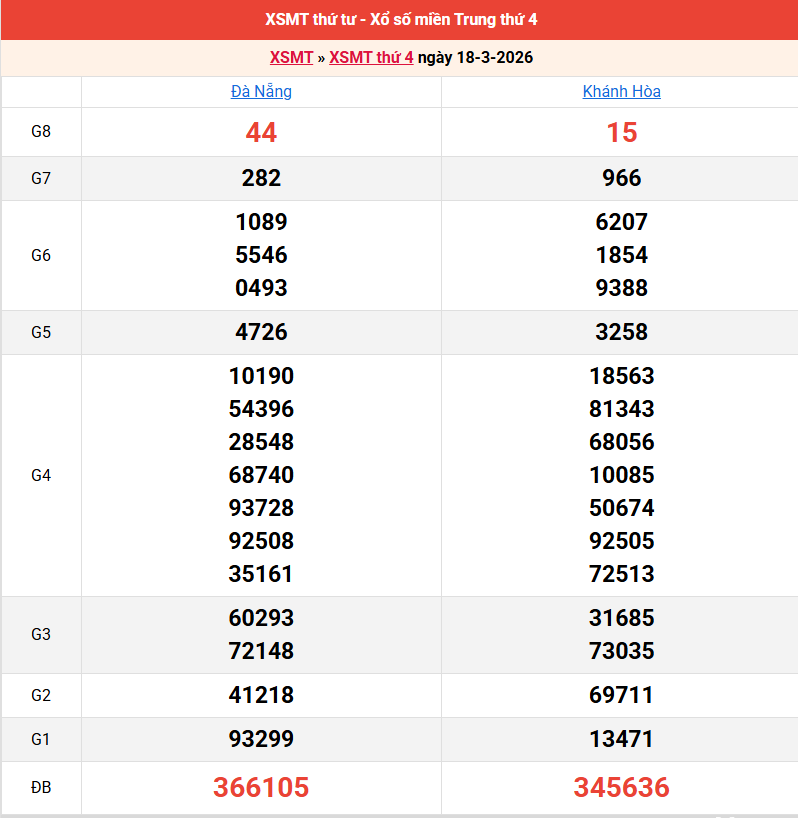 Bảng kết quả kỳ trước 18/03/2026