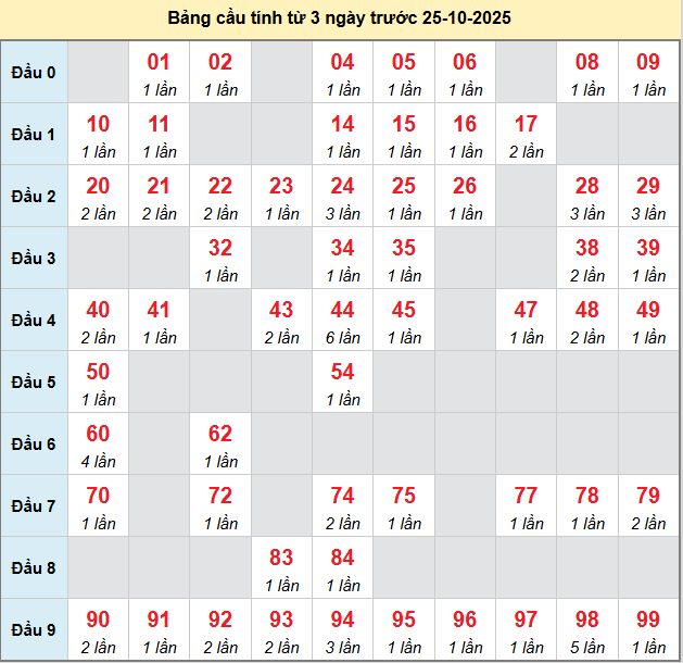 Mời bạn tham khảo bảng thống kê cầu bạch thủ MT dưới đây để chọn được các cặp lô dự đoán miền Trung 25/10 chuẩn nhất.