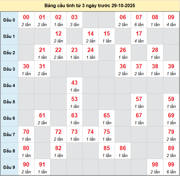 Thống kê cầu hôm nay giúp người chơi có thêm dữ liệu khi phân tích và dự đoán kỳ này được chính xác hơn. Trước khi đến với thống kê, mời các bạn theo dõi lại bảng kết quả kỳ trước để có cái nhìn bao quát hơn về vị trí các con số đã xuất hiện.