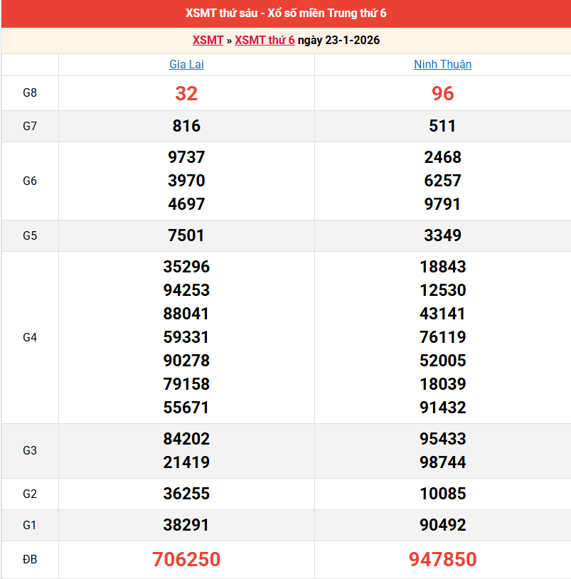 Bảng kết quả kỳ trước 23/01/2026